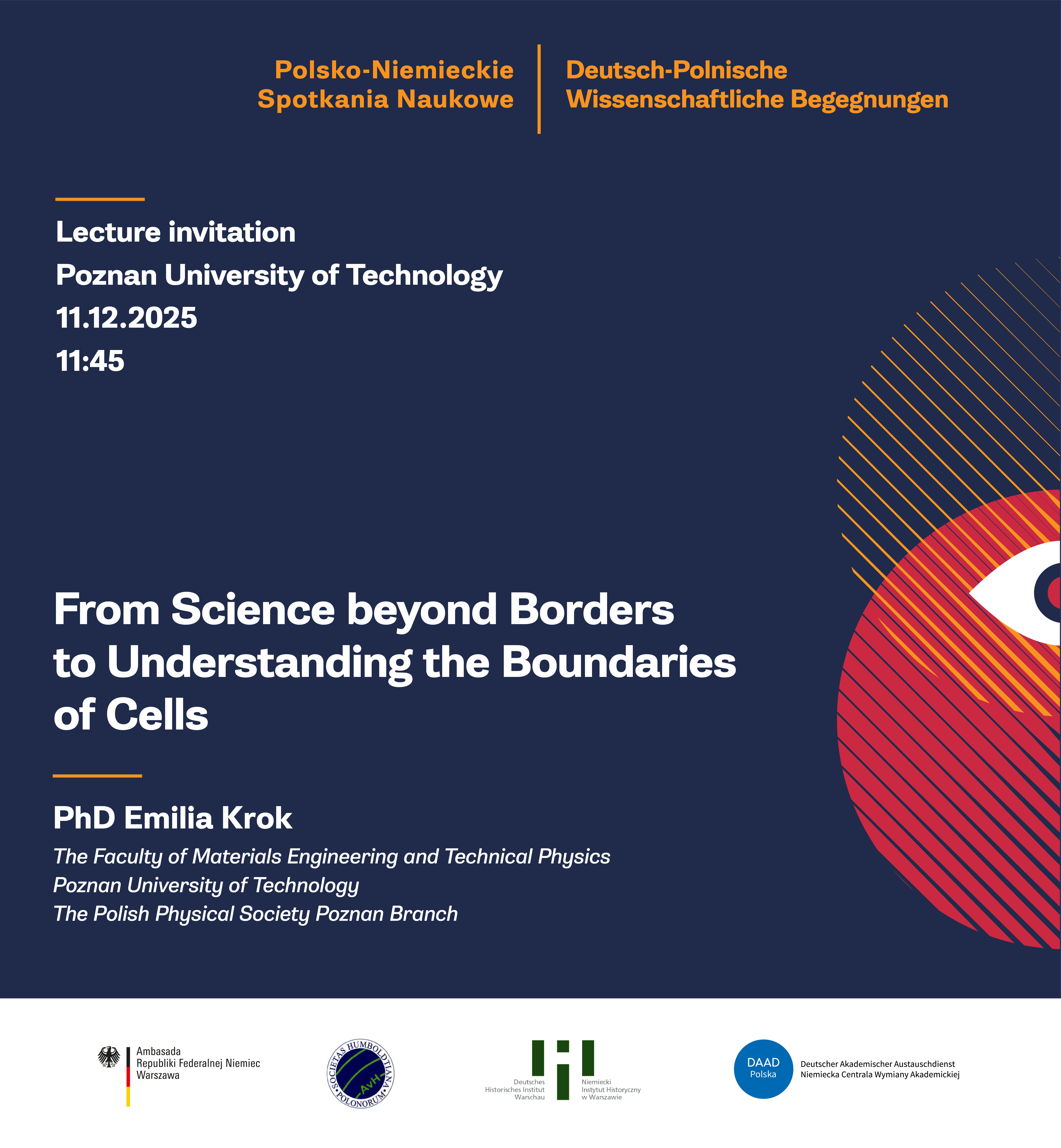 Zapraszamy na Seminarium organizowane przez Wydział Inżynierii Materiałowej i Fizyki Technicznej, Oddział Poznański Polskiego Towarzystwa Fizycznego organizowane w ramach Polsko-Niemieckich spotkań naukowych, które odbędzie się w dniu 11 grudnia 2025 r. - czwartek o godz. 11:45.
